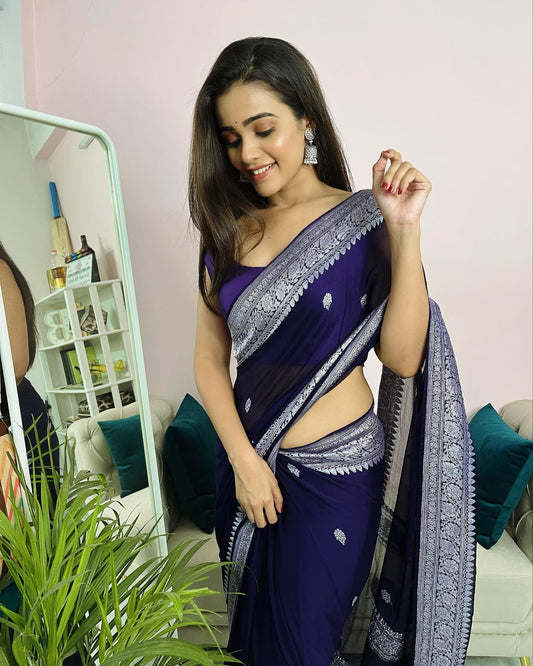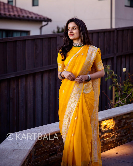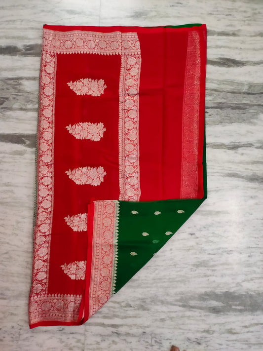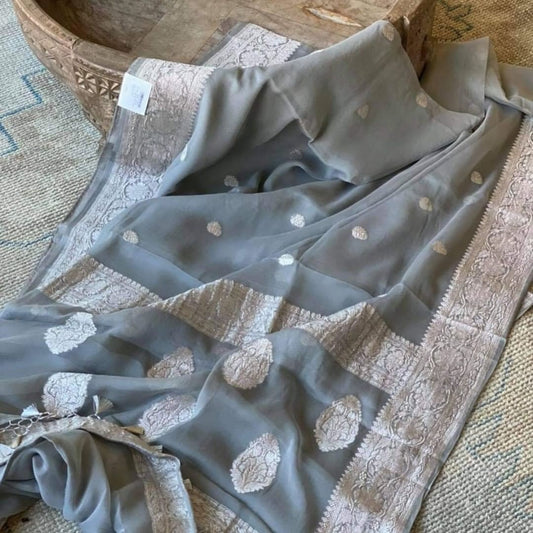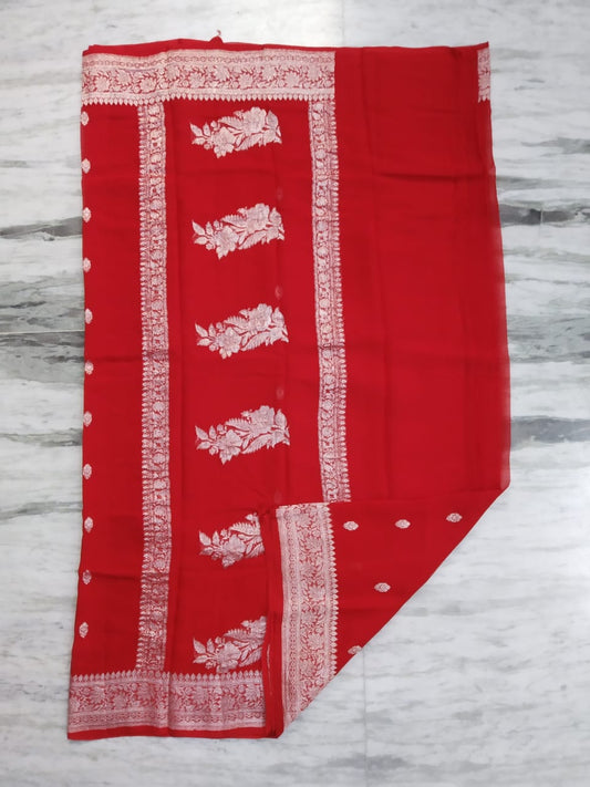 Banarasi Khaddi Georgette Pure Silk Kaduwa Weaving Silver Zari Saree