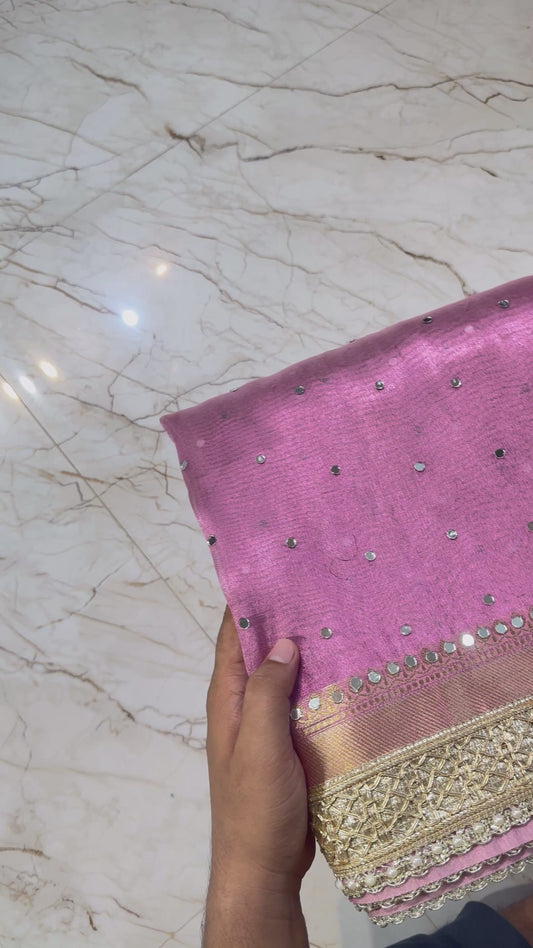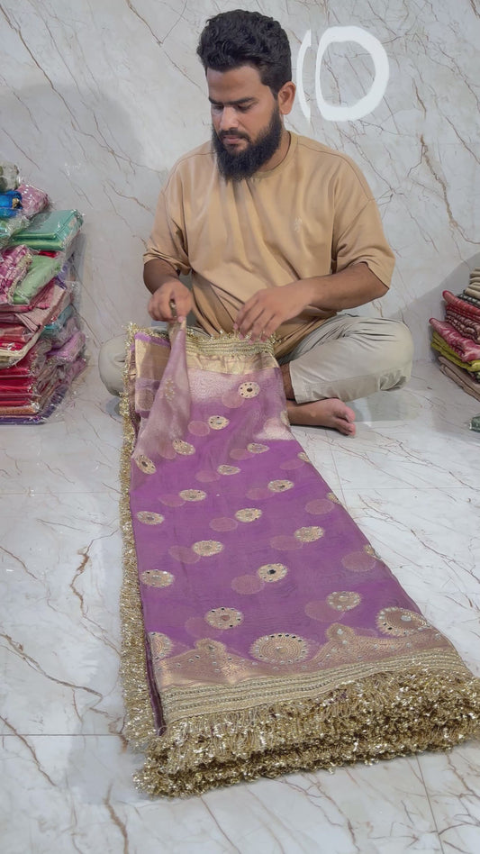 Banarasi Handloom Soft Tissue Silk Zardozi Work Saree