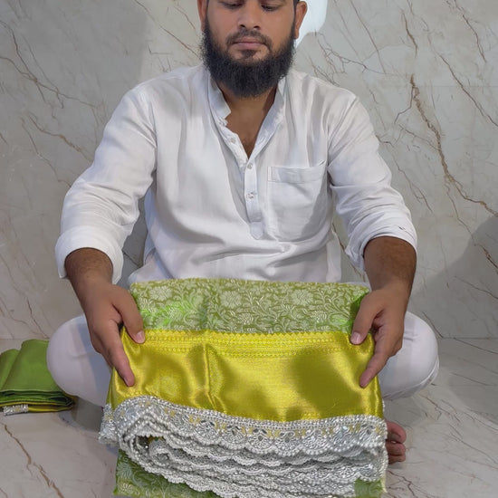 Step into the world of luxury and heritage with our exquisite Banarasi sarees, handwoven with the finest silk and adorned with intricate zari work. Originating from the holy city of Varanasi, these sarees have been a symbol of elegance, opulence, and tradition for centuries.
