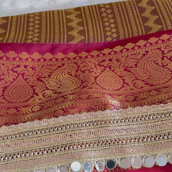 Step into the world of luxury and heritage with our exquisite Banarasi sarees, handwoven with the finest silk and adorned with intricate zari work. Originating from the holy city of Varanasi, these sarees have been a symbol of elegance, opulence, and tradition for centuries.