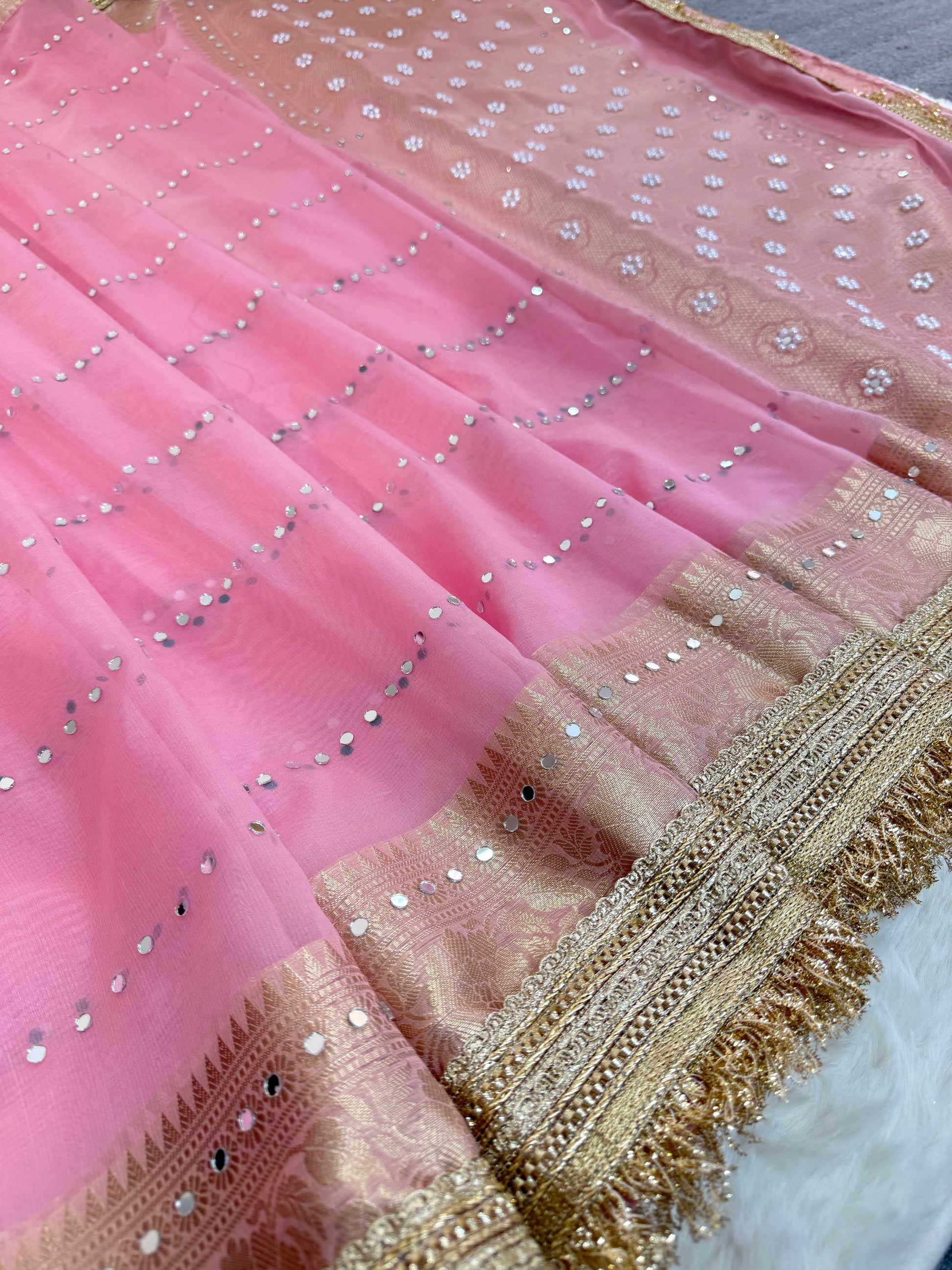 Banarasi Handloom Pearl Work Kora Silk Saree