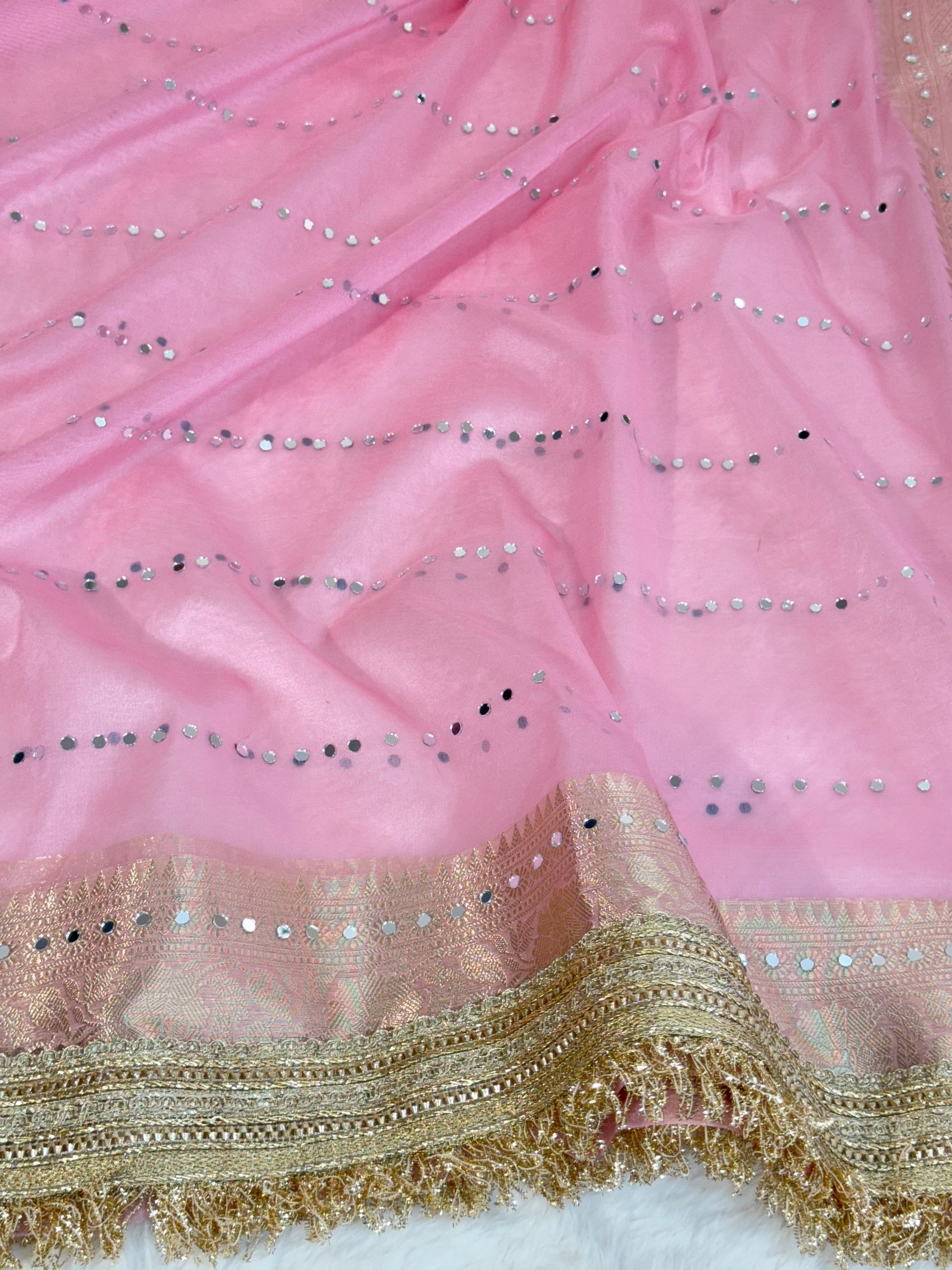 Step into the world of luxury and heritage with our exquisite Banarasi sarees, handwoven with the finest silk and adorned with intricate zari work. Originating from the holy city of Varanasi, these sarees have been a symbol of elegance, opulence, and tradition for centuries.