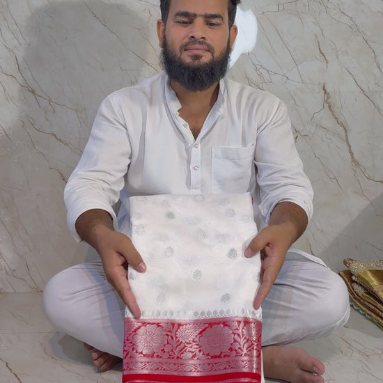 Banarasi sarees are traditional Indian sarees that are known for their luxurious fabric and intricate designs. They are made in the city of Varanasi, also known as Banaras, and are typically made from fine silk. The sarees can feature elaborate patterns woven with gold or silver threads, including floral designs, paisleys, and scenes from Hindu mythology. The craftsmanship of Banarasi sarees is considered to be some of the finest in the world, with many sarees taking weeks or even months to produce. Banarasi sarees are often considered to be a symbol of wealth and prestige, and are traditionally worn on special occasions such as weddings, festivals, and religious ceremonies. Their timeless elegance and intricate beauty make them a popular choice for both Indian and international audiences.