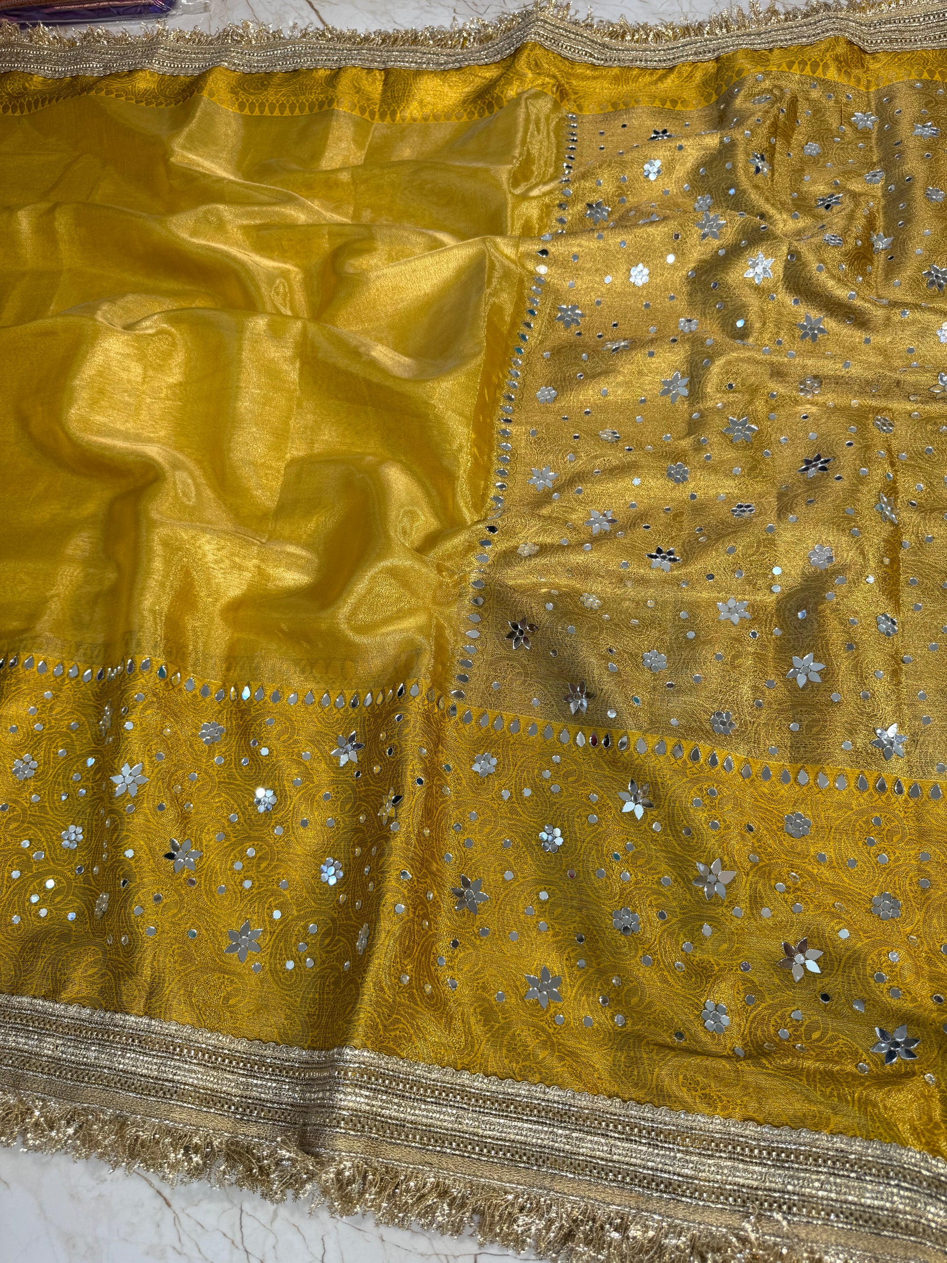 Step into the world of luxury and heritage with our exquisite Banarasi sarees, handwoven with the finest silk and adorned with intricate zari work. Originating from the holy city of Varanasi, these sarees have been a symbol of elegance, opulence, and tradition for centuries.